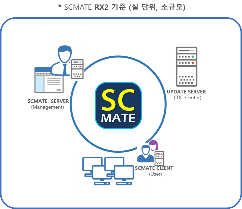 SCMATE 는 네트워크에 연결된 모든 컴퓨터를 중앙에서 효과적으로 관리, 제어 할 수 있도록 개발된 소프트웨어 입니다.